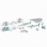 Ett kreativt pyssel där du får färglägga samt sätta ihop vattenlevande djur, växter och tillbehör till en snygg undervattens miljö som du sedan kan leka med och skapa fantastiska historier i kring. Det ingår hela 13 olika figurer som alla är tillverkade i tjock och hålbar FSC® MIX certifierad kartong med förtryckta linjer. Figurerna som ingår är. . .