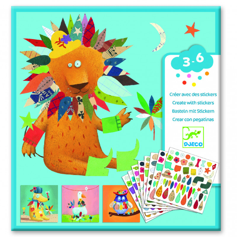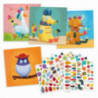 Dekorera de fina bilderna med klistermärken! I det här setet är det 4 olika djur att dekorera med klistermärken. Förpackningen innehåller 4 olika djur med fyra exemplar av varje och ca 424 klistermärken att dekorera med. En rolig och kreativ aktivitet för barn. Innehåller även en instruktionsbok med förslag. ".