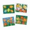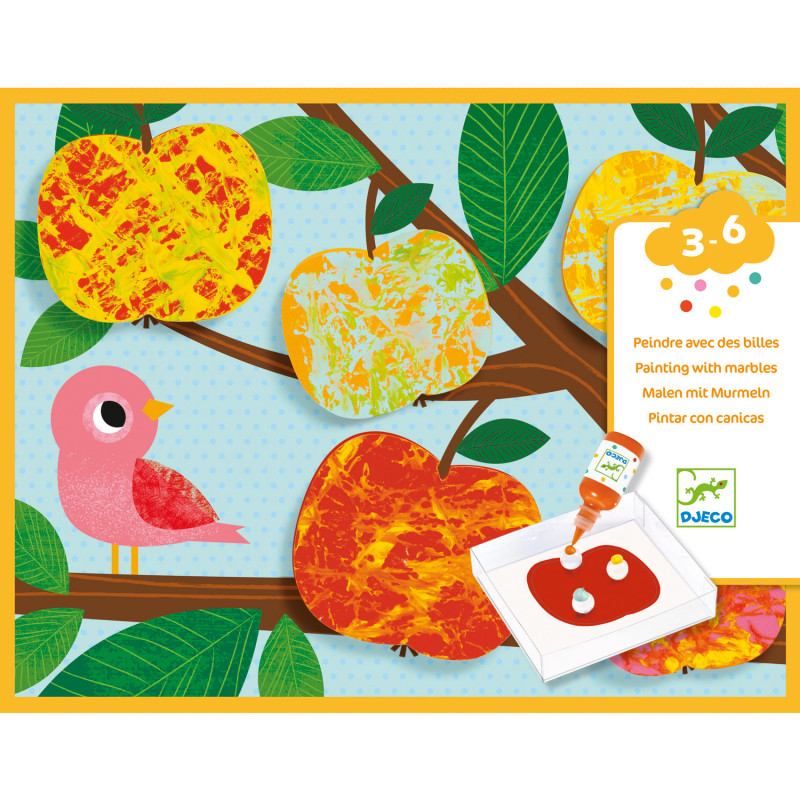 Ett roligt set med olika naturbilder där ni får prova på den populära kulmålnings-metoden som kan ge fantastiska resultat med en enkel metod. Tryck ut en utstansad form och lägg i plastasken, lägg i några av de medföljande kulorna, spruta lite färg på varje kula och låt kulorna rulla fram och tillbaka ett tag för att få snygga mönster på figuren. Sen är det bara att upprepa processen för de andra utstansade figurerna i samma form och klistra fast dem på de medföljande bakgrunderna för att få en fantastisk bild. Förpackningen inneh