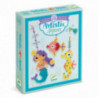 Ett kul pyssel från Djeco där man på en liten special-platta lägger ut magiska pärlor i form av figurer och sedan sprejar med vatten så att de aktiveras och fastnar vid varandra. Det ingår också material för att göra hängen av de färdiga figurerna av en sjöjungfru, en fisk och en sjöhäst.