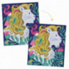 Ett kul pyssel där du får dekorera fina bilder med mängder av färgglada mini strass av färgad plast. De häftiga bilderna av mytiska djur och deras kompisar har markeringar där det är meningen att de små glänsande dekor-stenarna ska sitta. Det ingår runt 2000 små facetterade dekor-stenar som kommer uppdelade efter färg i små provrör. Häll ut några stenar i den färg du behöver på den lilla sorteringsbrickan, välj ut en sten som ligger med rätt sida upp och plocka upp stenen med verktyget för att lättare placera den exakt var du vill