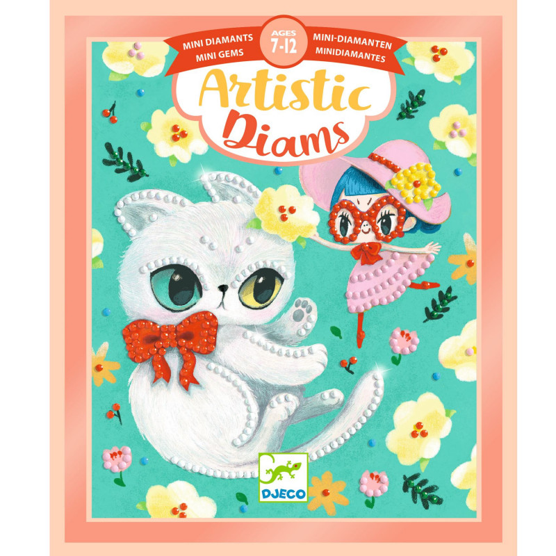 Ett kul pyssel där du får dekorera söta bilder med mängder av färgglada mini strass av färgad plast. De gulliga bilderna av djur och små människofigurer har markeringar där det är meningen att de små glänsande dekor-stenarna ska sitta. Det ingår runt 2000 små facetterade dekor-stenar som kommer uppdelade efter färg i små provrör. Häll ut några stenar i den färg du behöver på den lilla sorteringsbrickan, välj ut en sten som ligger med rätt sida upp och plocka upp stenen med verktyget för att lättare placera den exakt var du vill ha