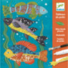 Ett nytt slags pyssel från Djeco där man ska klistra fast en massa små pärlor på bilder för att få en skimrande textur till dessa områden. Bilderna i setet har små fördjupningar för att pärlorna inte ska rulla hur som helst. Fyll fördjupningarna med lim, häll på pärlor i de färger du vill ha, rätta till pärlorna med penseln och se till att de fastnar i limmet, och låt sedan torka ordentligt. . Setet innehåller fyra bilder (på fiskar, fåglar, fjärilar och insekter), 16 rör med pärlor i olika färger, 3 askar med liten pip där du kan