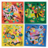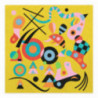 En rolig aktivitet där du använder färgad sand i olika färger för att färglägga och komplettera bilder där en nutida illustratör har inspirerats av Wassily Kandinsky, mästaren av abstrakt konst. Man lägger en bild i lådan, använder det specialdesignade verktyget för att pilla bort skyddspapperet från de klistriga ytorna som ska ha samma färg och strör över sand enligt de färgkodade instruktionerna. Sedan är det bara att hälla av överbliven sand genom hålet i lådans hörn och ner i den motsvarande breda burken. De fria former som sålunda framträder verkar tala till våra känslor, medan bilderna gradvis kommer till liv med härligt livfulla färger. Det är aldrig för sent att fördjupa sig i konstens fantastiska värld och häftet med förklaringar innehåller information om konstnären, hans verk och den konstnärliga rörelse som han tillhörde. Tillverkat av FSC®️ certifierat papper och kartong. Innehåll: 4 illustrerade kort (20 x 20 cm) med klistriga ytor under skyddspapper, 12 vida burkar med färgad sand i olika färger, 1 verktyg i plast samt ett häfte med inspiration, information och steg-för-steg beskrivningar i färgbilder. Från +7 till 99 år.