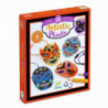 Ett kyl pyssel kit med material för att göra fem färgglada nyckelringar i form av mexikanska brottar-masker i nästan magisk plast. Lägg design-mallen under en motsvarande kontur i plast och kopiera mallen med hjälp av färgpennorna som ingår. När maskerna är färglagda ska de bakas i ugnen där det magiska sker: på bara några sekunder krymper plasten och blir hård och tjock! När de har svalnat är det bara att fästa maskerna vid de färgade nyckelringarna med de små ringarna så har du snygga och häftiga accessoarer. Nyckelringarna hålls ihop av fästen som enkelt skruvas isär när en nyckel ska läggas till eller avlägsnas. Innehåll: 5 genomskinliga konturer av krymp-plast, 5 nyckelringar (metall kablar med lås som skruvas ihop), 5 ringar att fästa maskerna vid nyckelringarna med, 5 kort med design mallar, 6 små färgpennor (gul, röd, ljusblå, blå, lila, svart), 1 häfte med inspiration och steg-för-steg instruktioner i färgbilder, 1 förvaringsask. Från +6 till 10 år.