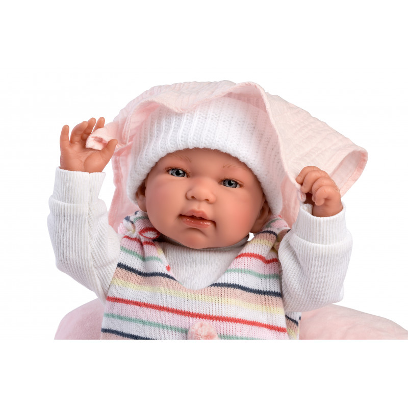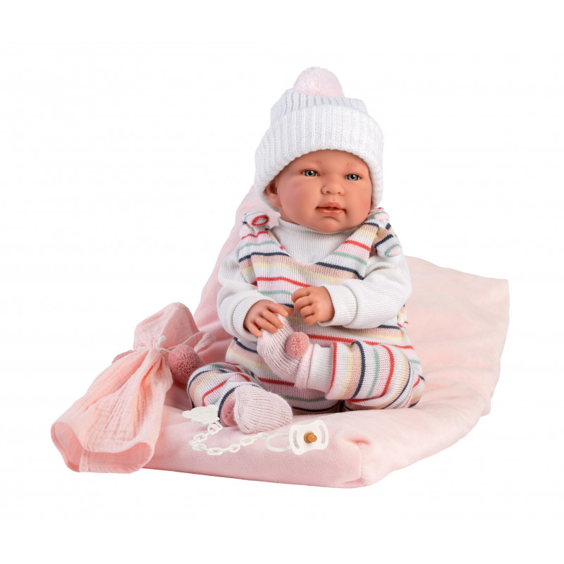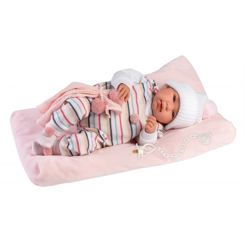 Dockan är ingen nappdocka, men nappen som medföljer går att fästa i munnen.