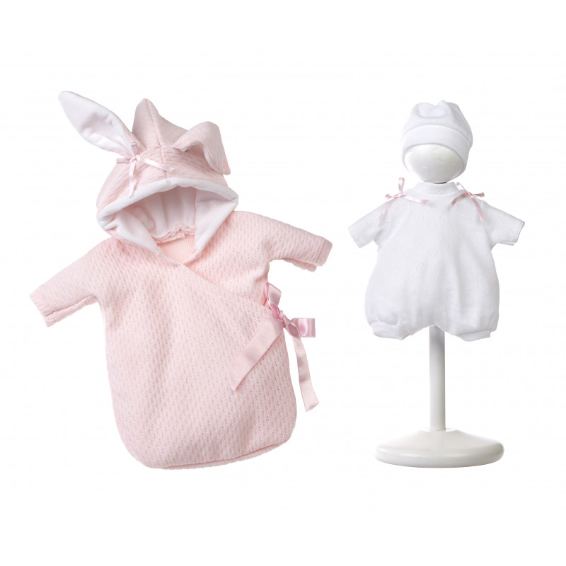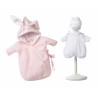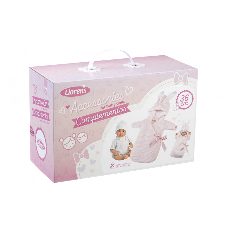Tillbehör och kläder från spanska Llorens. Passar till babydocka storlek 35 cm.