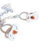 En napp med avtagbar napphållare som går att fästa i dockans kläder. Passar för Llorens dockor med ljud som styrs genom nappen i munnen, exempelvis Ruby, Rebecka och Adina.