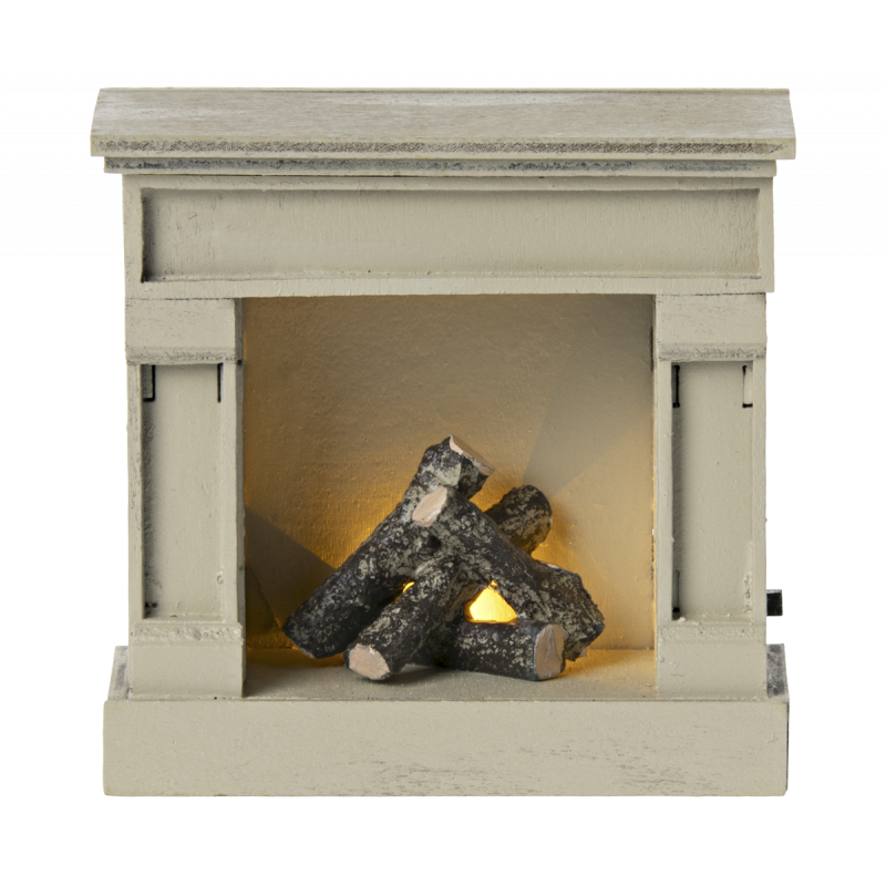 Använd denna träspis för att värma ditt miniatyrhem. Den har ett autentiskt utseende och en vintagefinish. Kom ihåg att stänga av när dina vänner går och lägger sig.