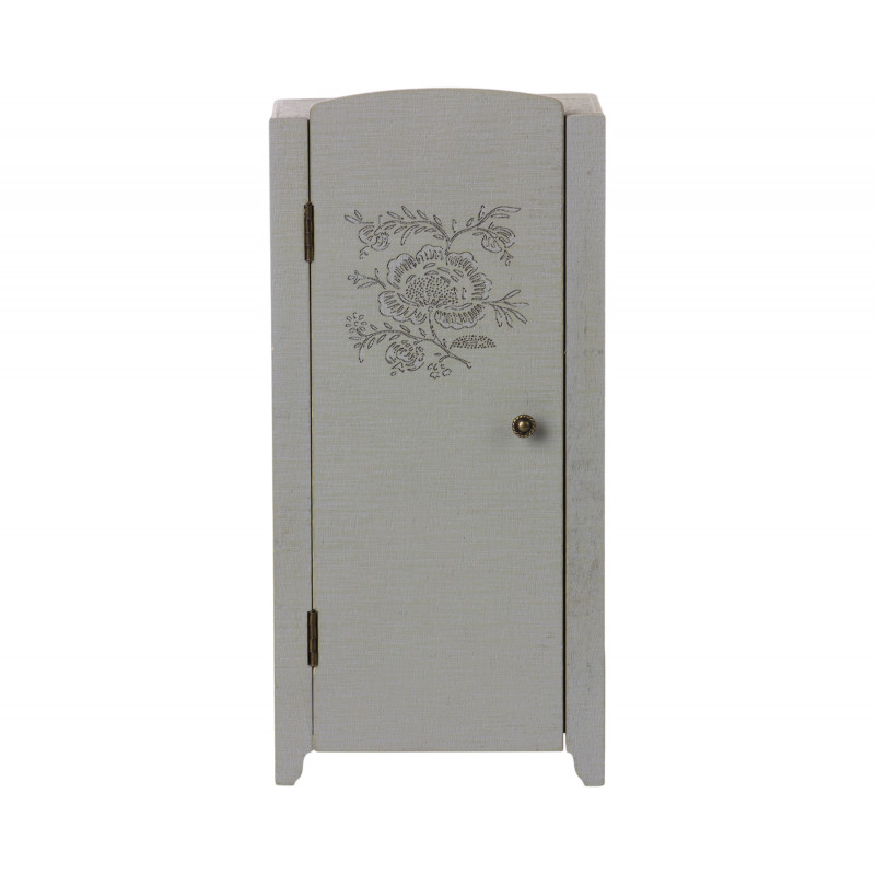 En liten garderob i FSC trä. Hjälp mössen att organisera sina saker i garderoben.