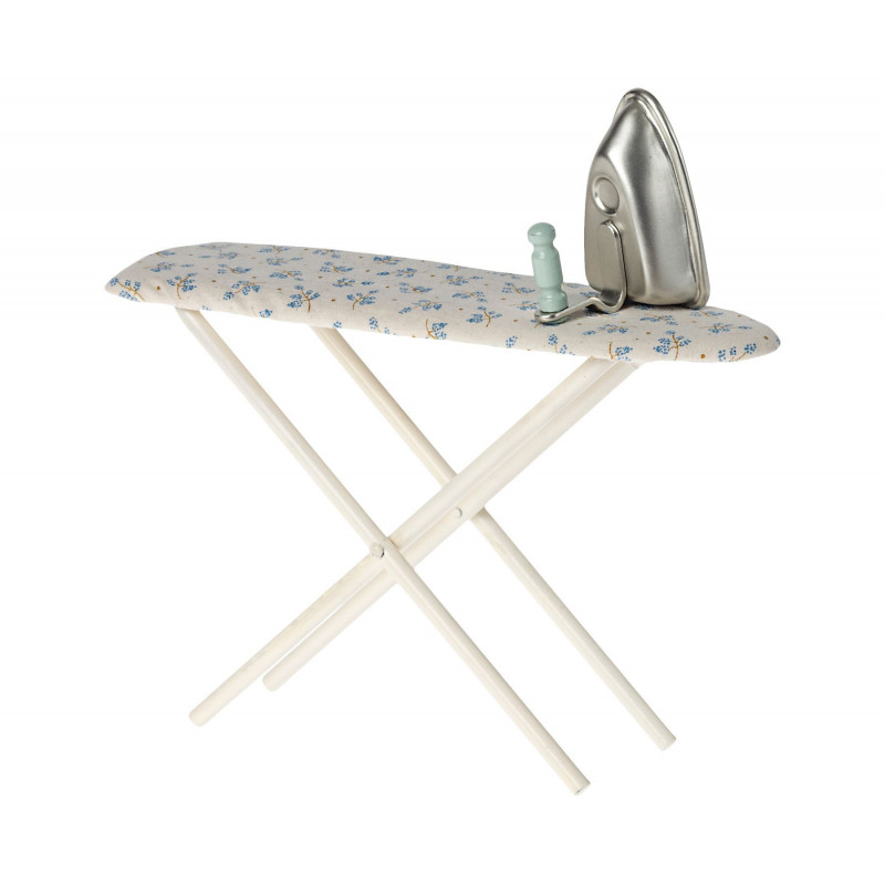 Söt strykbräda med tillhörande strykjärn från danska Maileg. Strykbrädan går att fälla ihop när man är färdig.