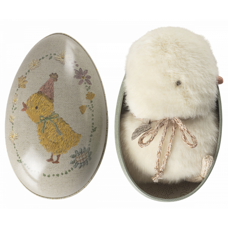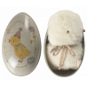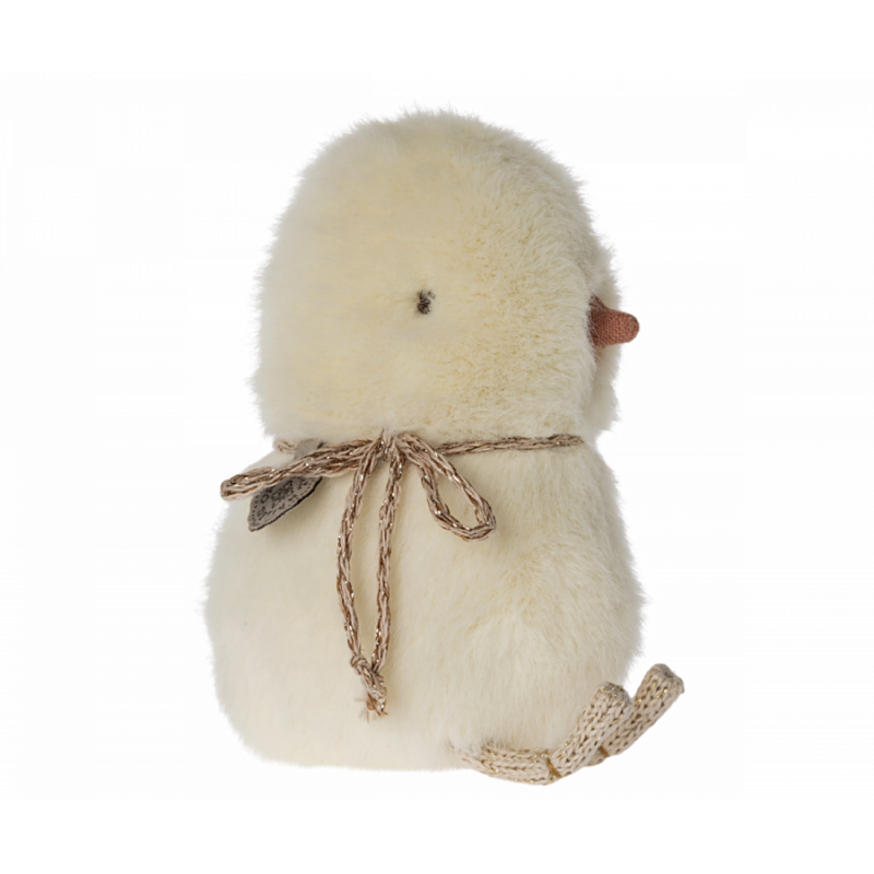 En bedårande liten plyschleksak med små stickade ben som glänser i guld. Metallägg säljs separat.