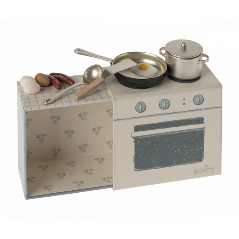 Ett köksset för alla möss! Setet innehåller köksredskap samt ägg och korv, för att göra den perfekta brunchen! Allt förpackat i en papperslåda inredd som ett litet kök.