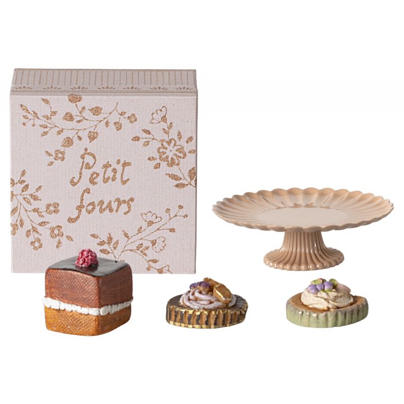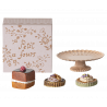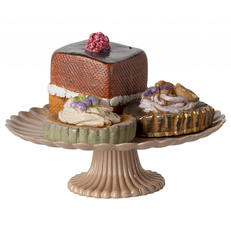 Denna lilla uppsättning med 3 läckra tårtor på ett vackert dekorerat tårtfat i rosa är ett måste. Tårtorna är noggrant dekorerade för hand och passar bäst för kaniner och möss i size 1 och 2.