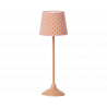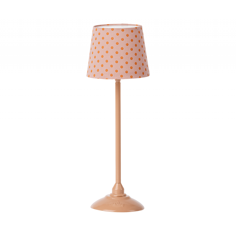 En golvlampa till ditt dockskåp! Lampan tänds och ger ett mjukt sken genom lampskärmen i vackert mönstrat Maileg tyg. Glöm inte att släcka ljuset när dina små vänner ska sova!