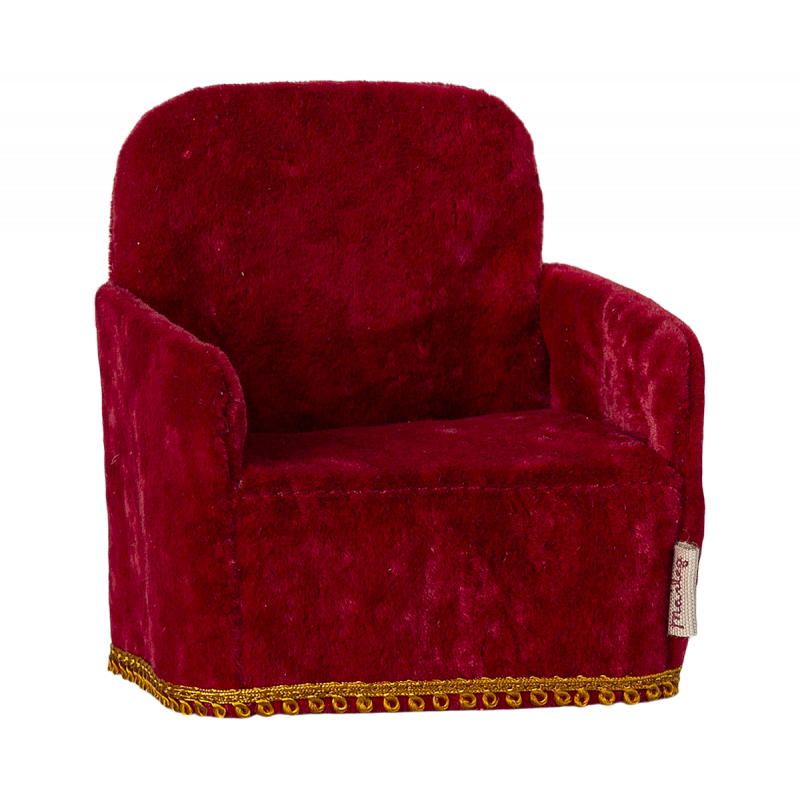 En perfekt plats för dina små Maileg-vänner att vila på. Den passar fint in i Mouse hole Farmhouse. Stolen levereras plattpackad och är lätt att fälla ihop och montera.