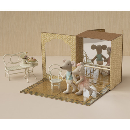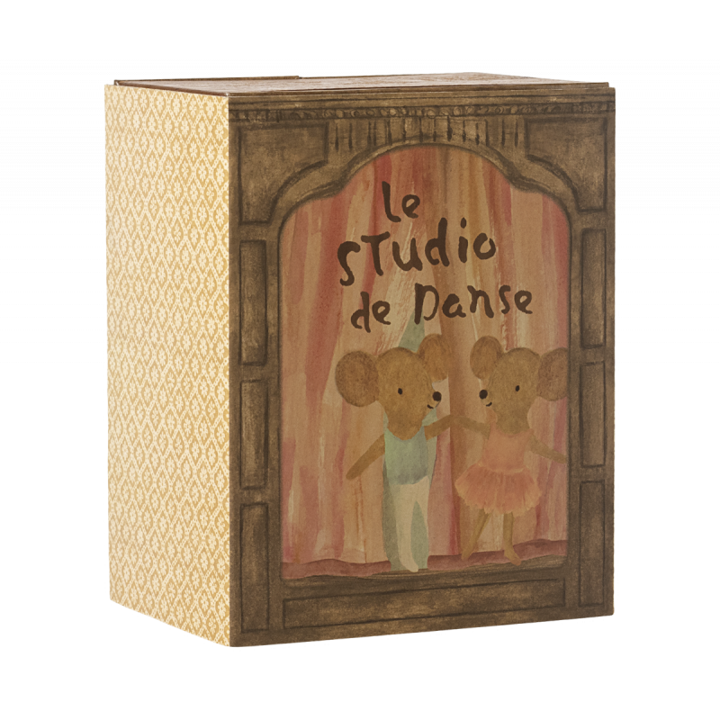 Öppna dörrarna till denna magiska låda och utforska en värld av dans, stjärnstoff och historieberättande. Detta set innehåller en papperslåda som är både en dansstudio och ett mysigt mushus, samt två möss utklädda för timmar av dans i sina vackra kläder.