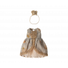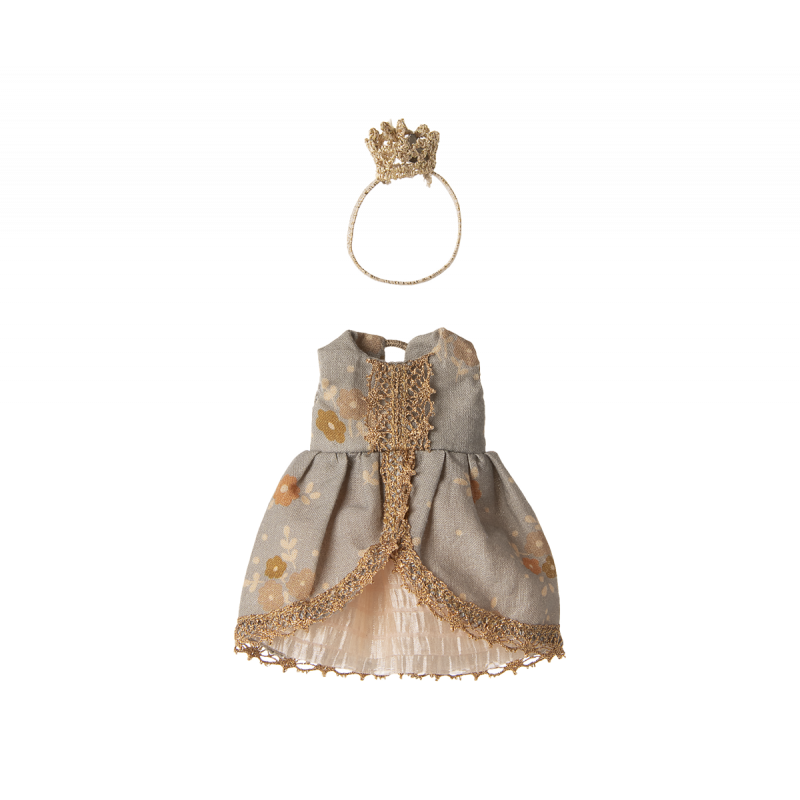 Om din mus drömmer om att klä ut sig till en riktig prinsessa är detta den perfekta chansen att låta den drömmen gå i uppfyllelse. Den här klänningen är perfekt i storlek för möss i storlek storasyster och är tillverkad med många vackra detaljer.