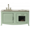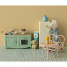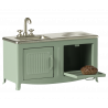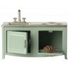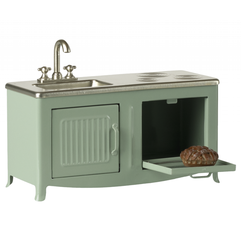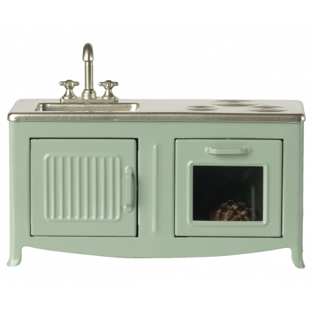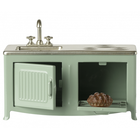 Hjärtat i varje hem är köket. Detta metallkök har en vacker färgton och många lekfulla detaljer som en skåpdörr, diskho och en ugn med en nybakad paj. Det har en perfekt storlek för musfamiljen.