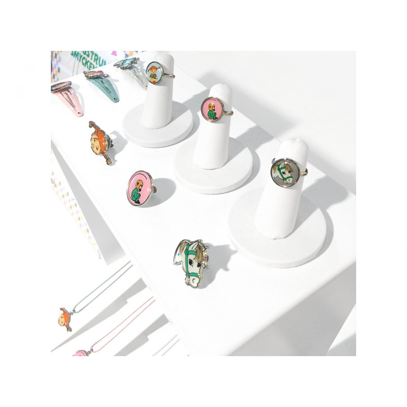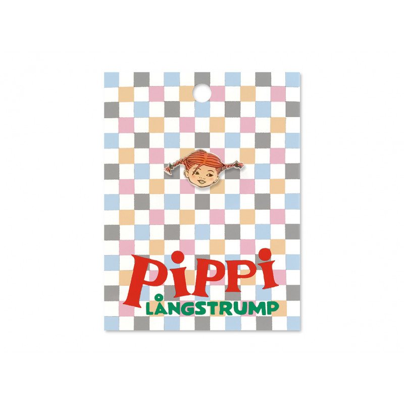 En fin pin med Ingrid Vang Nymans härliga illustration av Pippi Långstrump. Den är i metall och fästs med ett clips på baksidan. Det finns även halsband, ringar, hårspännen och armband.