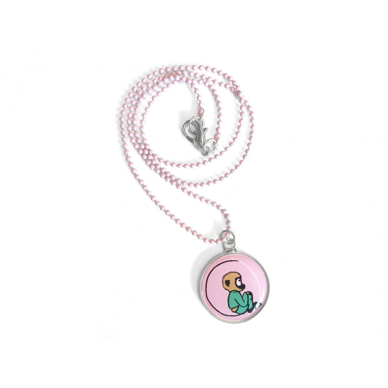 Allas favorit-apa finns nu som halsband! Ingrid Vang Nymans härliga illustration blir ett jättefint hänge på en rosa kedja med klolås. Hänget är i metall med högglans-lack på framsidan. Kommer i en fin ask med tittfönster. Det finns även halsband med Pippi och Lilla gubben.