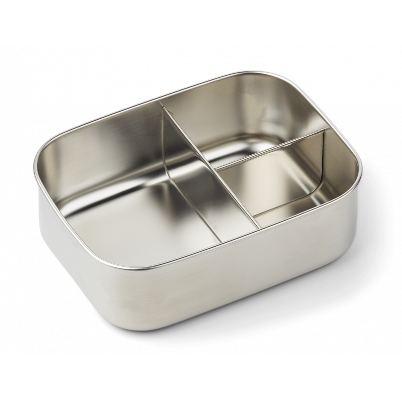 En lätt matlåda i rostfritt stål med ett sött silikonlock uppdelat i tre bekväma fack.