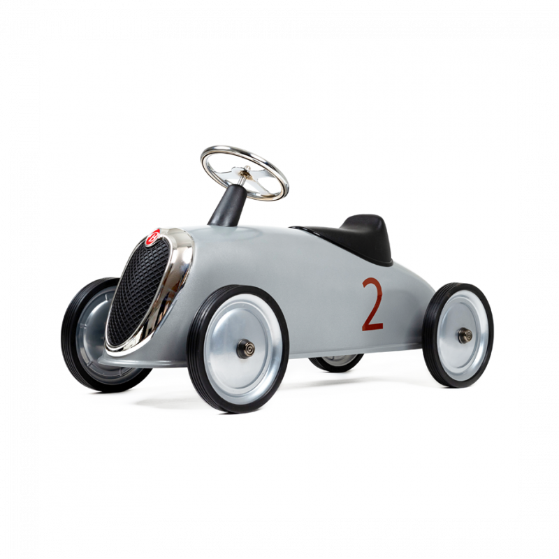 Bilen har funktionell styrning och stabila gummidäck som rör sig tyst runt i huset och även fungerar utmärkt utomhus. Den hjälper barnet att utveckla sin balans och motoriska färdigheter. Så snart barnet står upp kan han eller hon använda bilen säkert. En solid och mycket hållbar leksak.