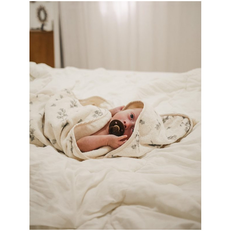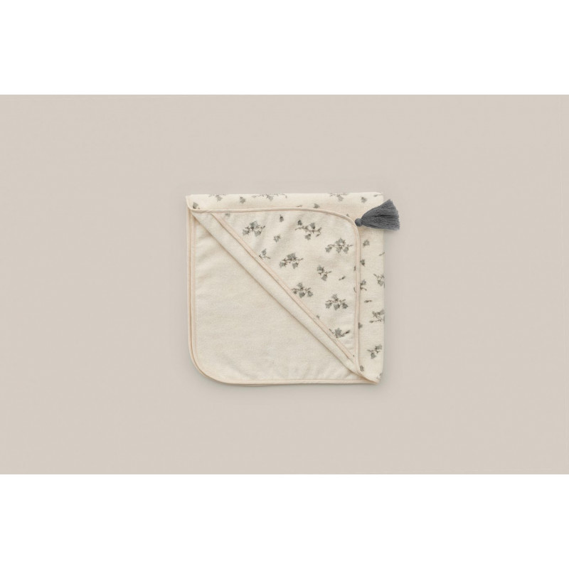En ljuvligt fin badcape till dom minsta, mönstret består av en gräddvit botten med blåklockor. Handduken är tillverkad i 100% Ekologisk bomull, dom små öglorna i handduken sitter tätt vilket gör att den absorberar vatten bra samtidigt som den torkar snabbt.