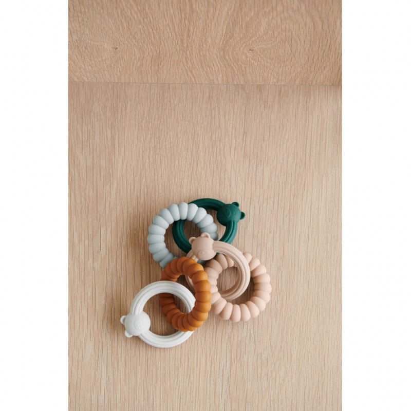Den här bitringen är härlig för det lilla barnet att bita på när tandköttet kliar, bitringen är greppvänlig för dom små händerna. Låt barnet undersöka ringarna och dess olika texturer. CE-märkt. Material: 100% silikon Mått: H 2 cm (Bredaste delen) B 8 cm L 10 cm