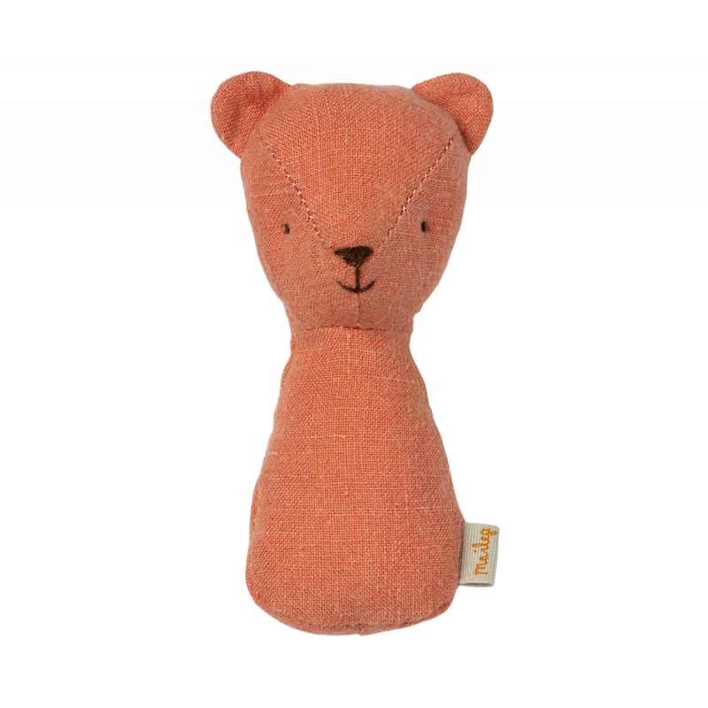 En mysig skallra till det lilla barnet, greppvänlig för små händer med ett dovt behagligt ljud som låter när den skakas.