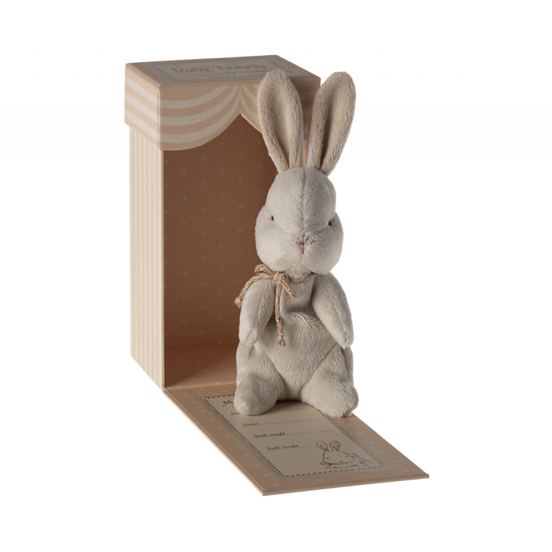 My first bunny är perfekt för små händer. Den är tillverkad i mjuk plyschkvalitet och har ett färgat band runt halsen. Den kommer i en vacker presentask, inuti kan du lägga till födelseinformationen.