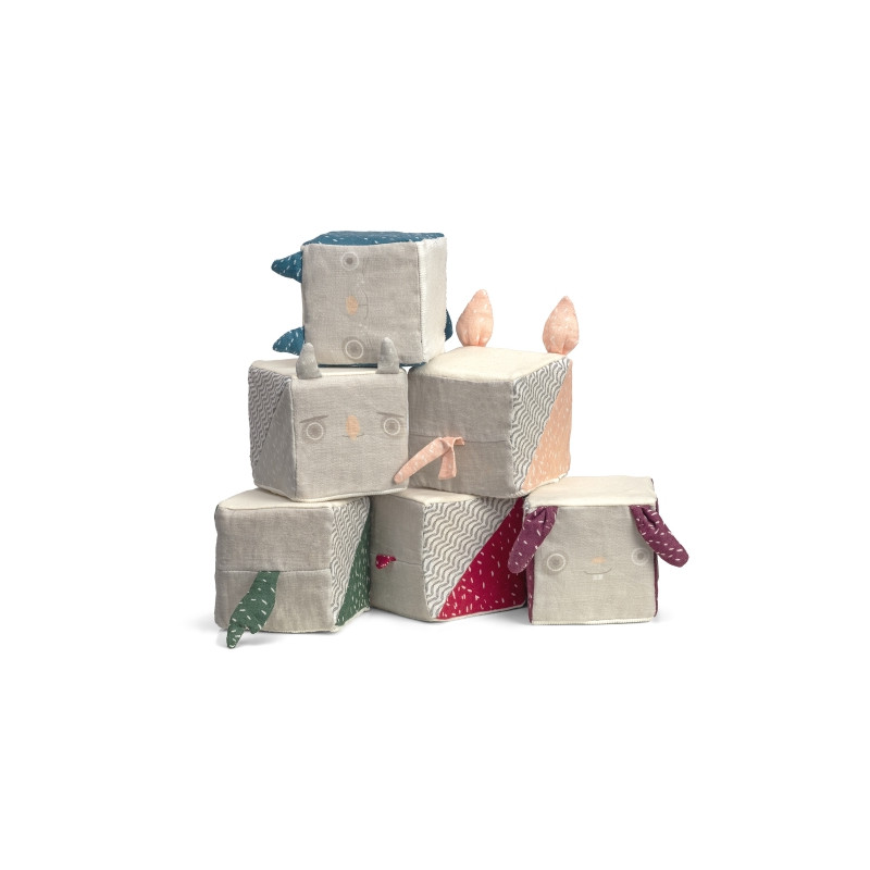 Tre stora, mjuka klossar i form av skojiga djurkompisar. En rolig leksak för de minsta barnen!