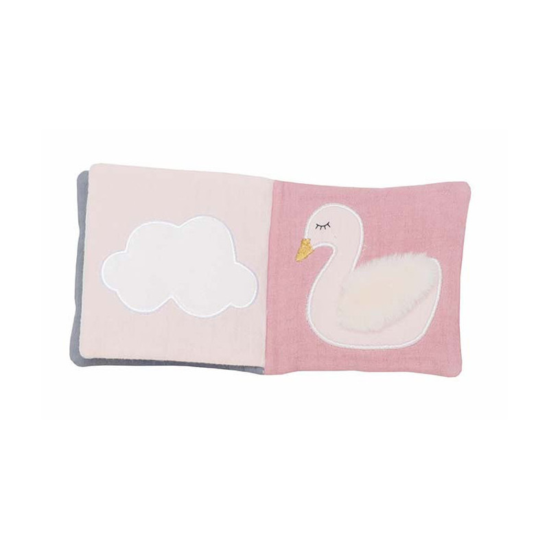 En mjuk tygbok till de allra minsta, tillverkad helt i textil med flera roliga funktioner för de små. Det lilla barnet kan se sig själv i spegeln eller pipa på en rolig figur. Det finns även figurer som prasslar. Tvättråd: Handtvätt Mått: 11 x 11 x 5 cm