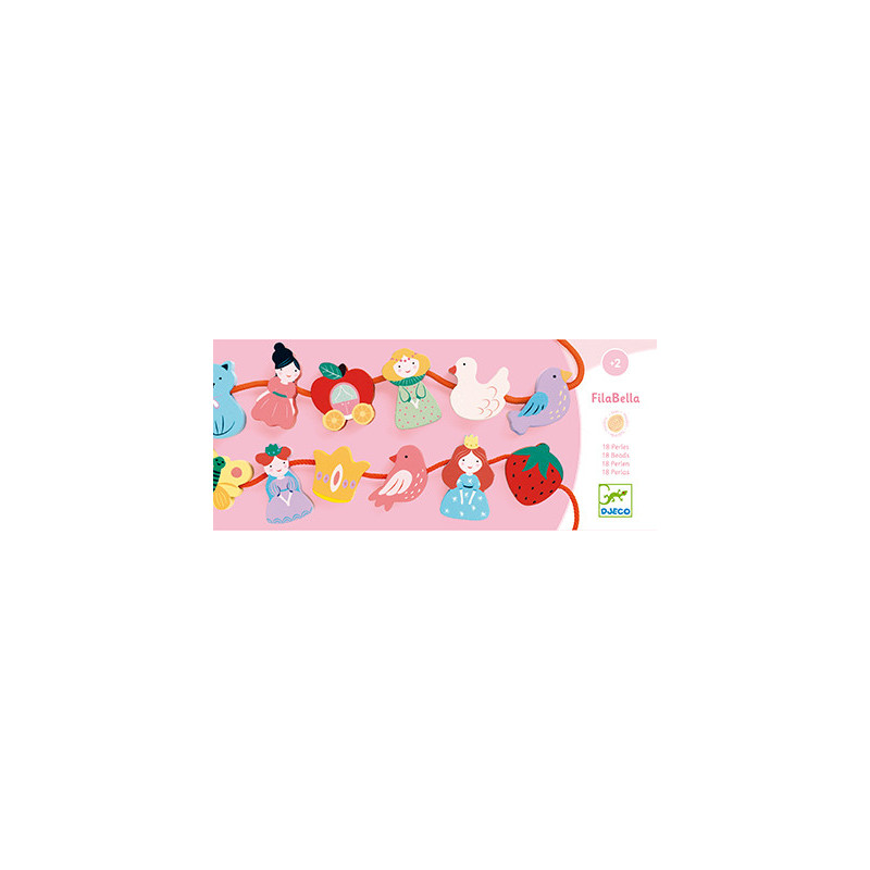 Ett kul sätt att träna upp koordinationen och finmotoriken genom att trä upp stora pärlor på snoddar som liknar skosnören med långa ändar. Fina formade träpärlor med stora hål och motiv med prinsessor, blommor, frukter, små djur och liknande. Barnet använder pärlorna till att skapa fina halsband och dekorationer, eller trär bara upp pärlorna för att det är kul och återanvänder allt nästa gång. Pärlorna är tjocka och ganska enkla att hantera för små händer, och snoddarna har långa stela ändar som underlättar uppgiften att trä på pärlorna. Innehåll: 16 formade och målade träpärlor samt 2 snören. Från +2 år.