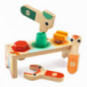 En rolig leksak för att lära sig om verktyg och öva upp motorik, logiskt tänkande och igenkänning av färg och form. Setet består av tre leksaksverktyg (en skruvmejsel, en hammare och en skiftnyckel) och en ställning med tre saker att försöka få ner. Vilket hål ska den gula skruvan ner i och vilket av verktygen passar för att skruva ner den? - bara en kombination funkar! Från 18 månader.