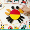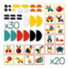 Platta byggklossar i geometriska former och klara färger som kan användas för att skapa motiv efter modell-kort eller ur fantasin. Det är tre olika svårighetsgrader på de medföljande model-korten som i första hand föreställer djur. Innehåller 30 delar och 20 modell-kort. Från 3 år.