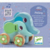 En kul leksak på fyra hjul, i form av två små elefanter och som spelar en melodi när man skjuter den framåt eller bakåt. Elefanterna har varsitt roligt öra i trä som är fastsatt med gummiband och hjulen har ringar av gummi som gör att de rullar lätt och tyst. Leksaken är tillverkad i trä och har en mekanisk speldosa utan elektronik som spelar den söta melodin Broder Jakob. Från +10 månader. Storlek på leksaken: 11 x 12 x 9 cm.