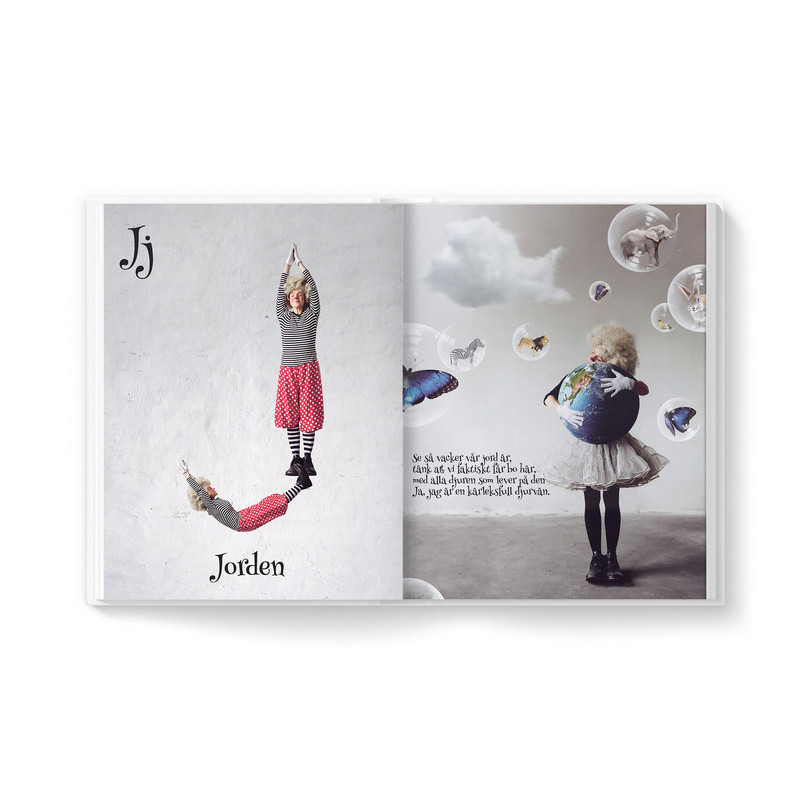 En inbunden alfabetsbok för lek och lärande. Bokens utformning med exklusiva material gör den även till en vacker inredningsdetalj i barnrummet. Tonsatta ramsor av Glenn Larsson, symfoniker. Musiken lanseras på youtube hösten 2019. Bildmaterial och Clownen Minna: Tove Frank