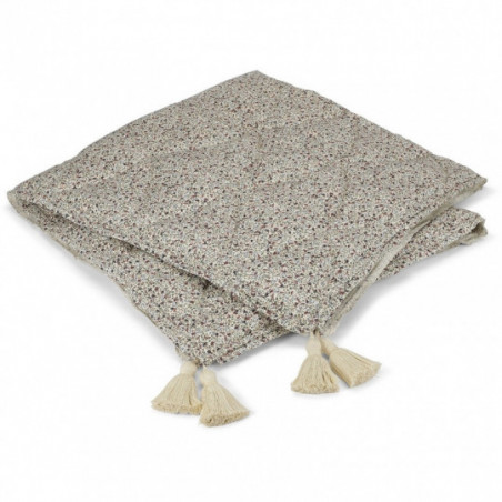 En ljuvlig babyfilt från danska Konges Slöjd. Filten är mjukt vadderad och quiltad sydd i ett fantastiskt tyg med fina detaljer. I vardera hörn sitter en tofs som en fin dekoration. Svep in barnet i filten eller varför inte använd den som en lekmatta på golvet, en filt med många möjligheter. Mått: 120x120 cm Material: 100% Ekologisk bomull