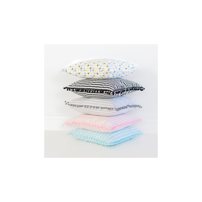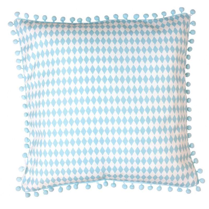 Nya kuddar är ett enkelt sätt att göra barnrummet personligt och mysigt. Kuddfodralet stängs med dragkedja. Som en extra detalj löper en kant runt hela kuddfodralet med små dekorativa bollar. Den här produkten är helt eller till största delen tillverkad av återvunnet material och färgen på textilierna kan därför variera något. Innerkudde ingår ej. Komplettera gärna med matchande vimplar och förvaringskorgar. Färg: Blå Mått: 40 x 40 x cm
