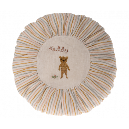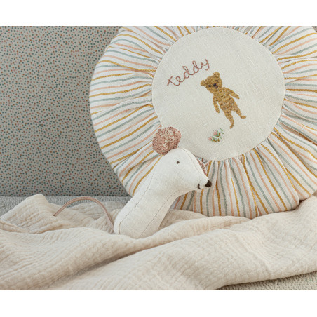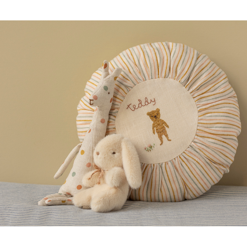 Kudde med överdrag i naturligt linne och vackra broderade detaljer.