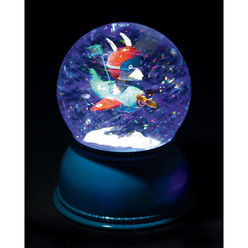 Nattlampan skiftar vackert och rofyllt i färg samtidigt som det automatiskt virvlar glitter om den söta figuren.