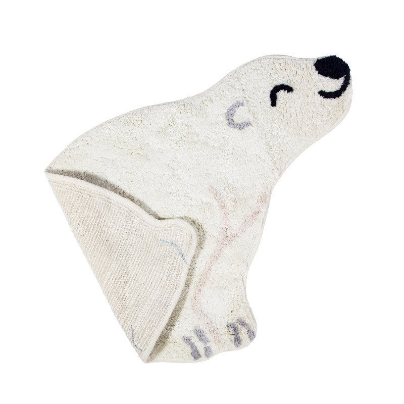Gosa ner fötterna i den här mjuka mattan i form av en vänlig Isbjörn. Mattan är tillverkad i 100% bomull.