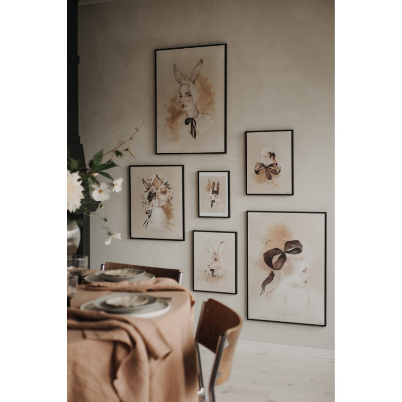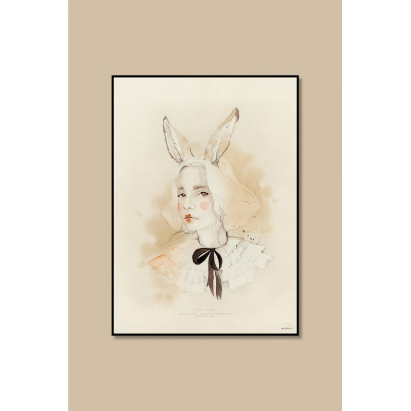 Solen ligger som en gigantisk apelsinklyfta vid slutet av sjöns bländande kant. Hela världen färgas varm strax innan solen ger ifrån sig sitt sista ljus och allting blir svart. Det tar ofta bara några ögonblick sedan är stunden förbi. Men vid den tidpunkten är dörren öppen. Hon ger tröst om du öppnar ditt hjärta. Postern är 50◊70 cm och tryckt på 170g Munken Polar Rough matt papper för att bibehålla den fina känslan av originalet i akvarell. Limiterad upplaga, när den är slut är den slut för alltid.