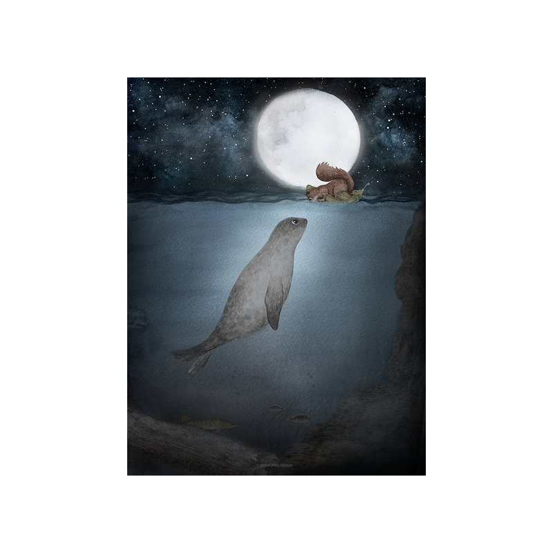 Månen har aldrig varit större än den här kvällen. Ekorren Harry tar en chansning och hoppar på sitt stora ekblad mitt i natten för att försöka se månen bättre. En skugga syns plötsligt under ytan och när han kikar ner i vattnet möter han sälen Frejas nyfikna blick.