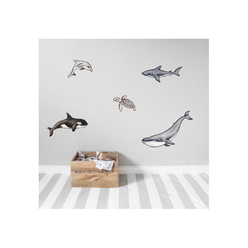 Det här är späckhuggaren Otis! Ett vackert starkt djur, lekfull och beskyddande, innerligt jagar han efter kärlek och är en trofast kompanjon för evigt. Otis är en av fem vänner i Havets gäng. Späckhuggaren Otis är ett flyttbart konstverk för målade väggar, målad tapet och tjockare typer av tapet.
