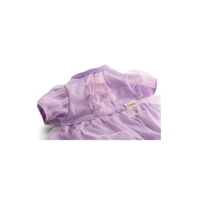 Denna mjuka kalasklänning med skimrande tyll till dockan blir festplagget nummer ett bland dockkläderna i Skrållans garderob.