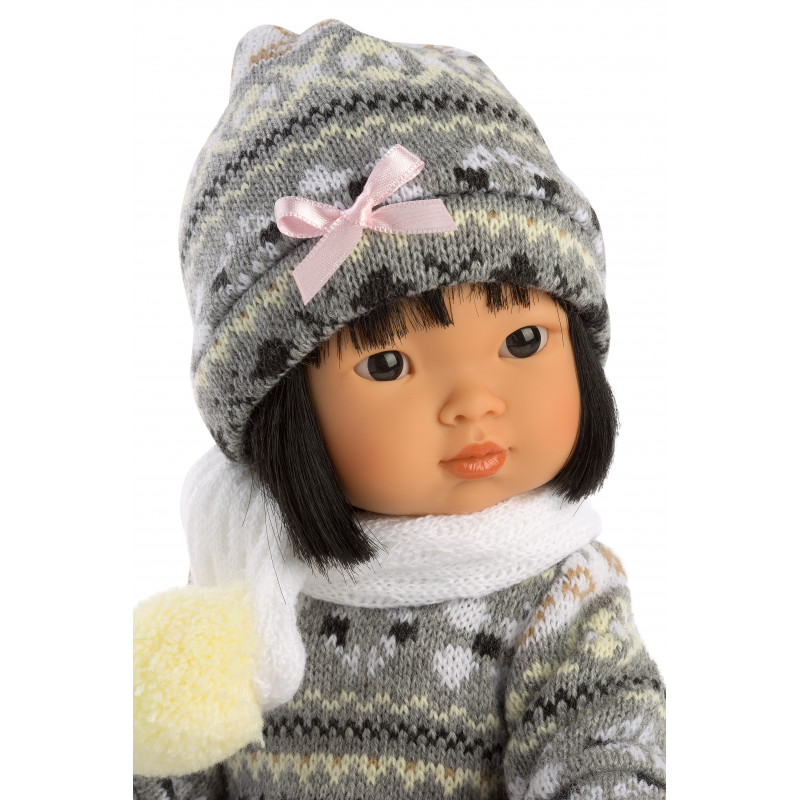 Lucy har hård kropp och kan stå själv. Hon är klädd i gråmönstrad stickad tröja med tyllkjol och matchande mössa och strumpor, samt vit halsduk med pälsbollar.