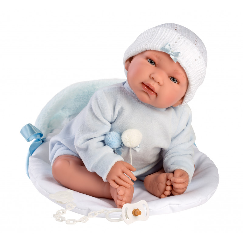 Dockan är ingen nappdocka, men nappen som medföljer går att fästa i munnen.