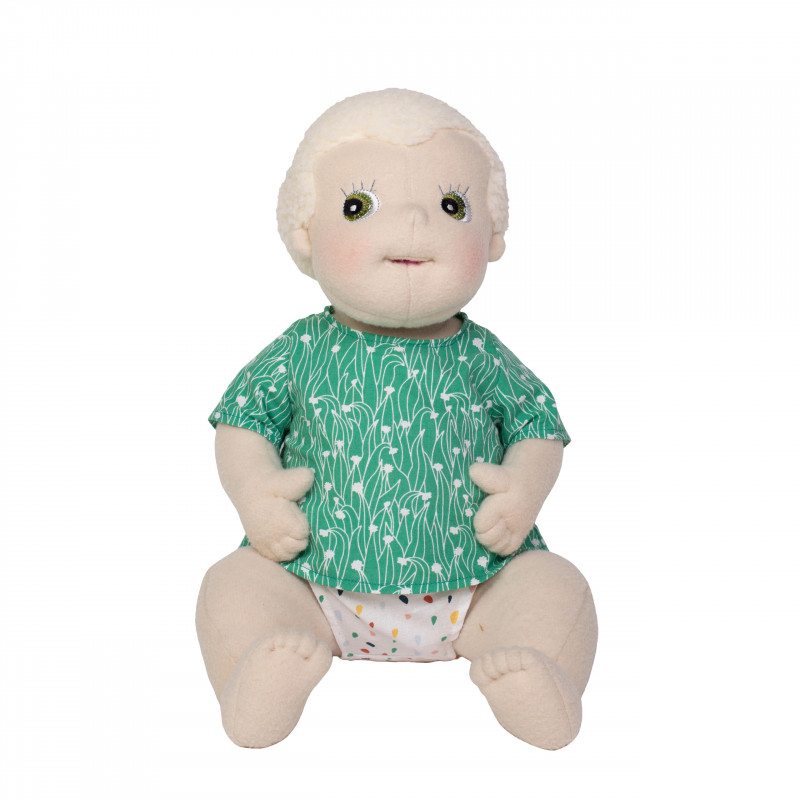 Rubens baby Carl använder inga ord ännu men har mycket att säga på många andra sätt. Om du följer honom så kommer han att visa vad han är intresserad av (Carl är sen med att börja prata). Baby-dockan Carl är en emotionellt intelligent vän som hjälper till med språkutveckling, lekförmåga och kroppsuppfattning. Denna mjuka, handgjorda docka har utvecklats särskilt tillsammans med experter för att hjälpa barn att lära sig mer om sina kroppar, känslor och världen omkring dem genom lek. Rubens baby Carl har ljus hud och blont hår. Dockan har en mjuk kropp och är 45 cm hög och väger 600 g. Dockans hud är tillverkad av 100 % ekologisk bomull, certifierad enligt Organic Content Standard (OCS) och har en fyllning av 100 % Global Recycled Standard (GRS) polyesterfibrer.